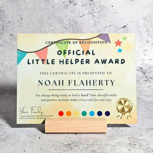 Original price £20.00Original price £20.00 - Original price £20.00Original price £20.00Current price £16.00£16.00 - £16.00Current price £16.00| /Brighten up your little one’s day with our Personalised "Official Little Helper Award" Metal Print Certificate. Designed to celebrate their enthusi...