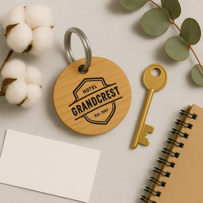 Provide your own logo/artwork/design, business name or personalised text and we will engrave your design onto our handcut, solid oak wood keyrings. We also design logos, so if you would like us to design a special logo for you, contact us for a custom quote!