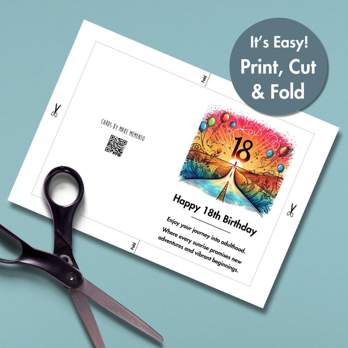 • 18th Birthday Card: 1 high-quality, print-ready PDF file of the birthday card. Dimensions perfectly sized for standard A4 paper, resulting in a 5x7 inch card when folded.
