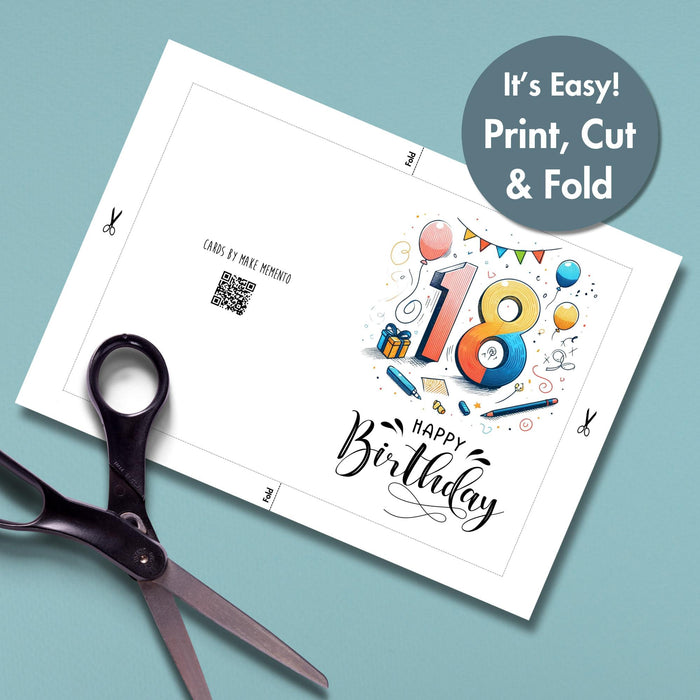 • 18th Birthday Card: 1 high-quality, print-ready PDF file of the birthday card. Dimensions perfectly sized for standard A4 paper, resulting in a 5x7 inch card when folded.