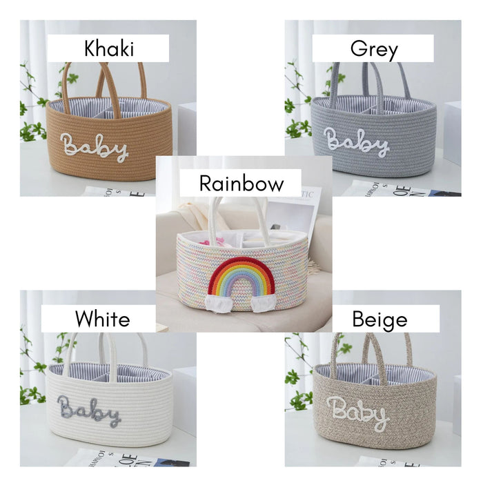 Looking for the perfect way to organise your nursery with a touch of charm? Discover our versatile cotton rope storage baskets, an ideal gift for new parents or parents-to-be. Choose from 5 delightful colours; Rainbow, Grey, Beige, Khaki, or White to brighten up any corner of your room.