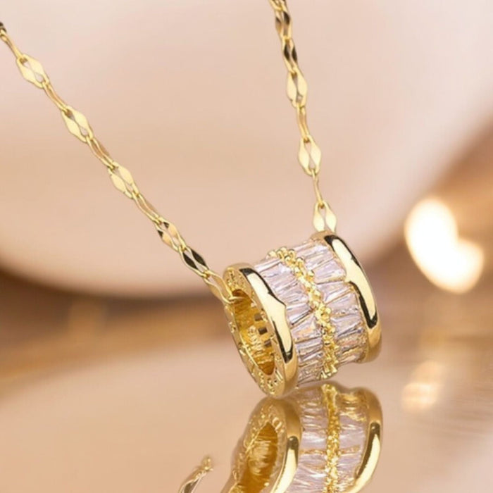 Surprise her with the Sparkling Crystal Barrel Pendant Necklace. Its timeless elegance and exquisite craftsmanship make it a gift she'll treasure forever. Order now to give her a piece of jewellery that's as unique and beautiful as she is.
