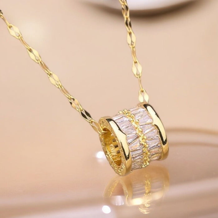 - Elegant Design: The pendant features a unique barrel shape adorned with sparkling crystals, adding a touch of glamour to any outfit.