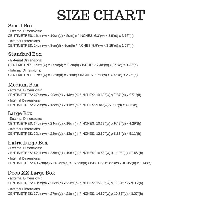 Choose from 6 sizes available, and there are various options for the wood stain colour finish you would like, so you can be sure to have a gift that matches your style! (see colour chart). See our wooden box section for alternative styles.