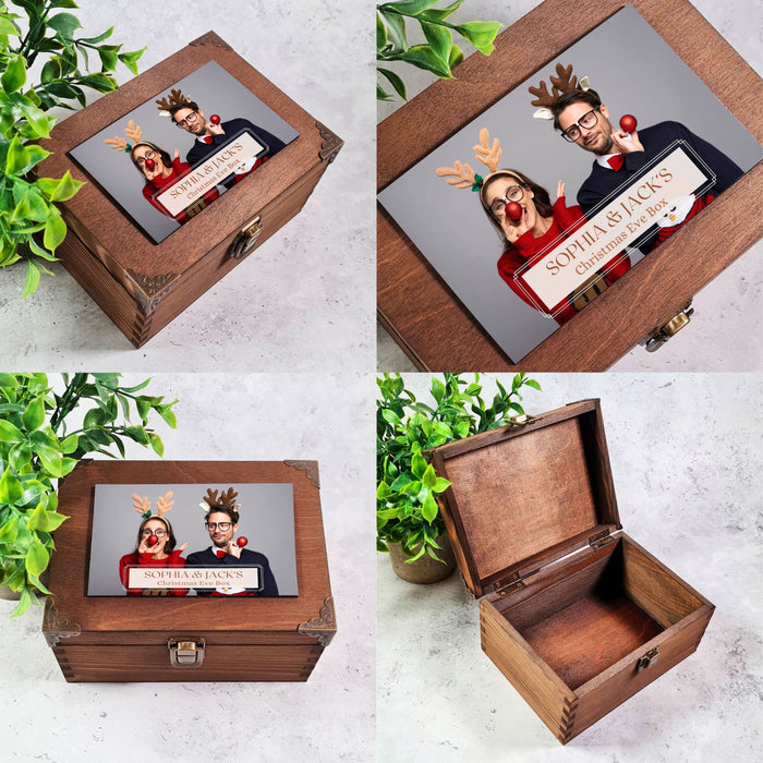 Celebrate Christmas Eve with your special someone using our Personalised Couples Christmas Eve Box. This charming wooden box features your favourite couples photo and custom text, creating a fun, unique Christmas keepsake for couples. Available in 6 sizes, it’s perfect for storing holiday treats, love notes, or special gifts to share.