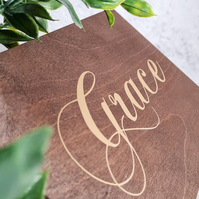 This rustic, personalised hand-printed wooden keepsake box makes a wonderful gift for a special loved one! Made from solid pine wood, and finished with high quality wood stain, this elegant, gold print custom wood memory box is a gift made to be treasured! This stylish, classic design can incorporate any name and has a striking, metallic gold text print to add that extra special touch! This box also comes with a secure bronze latch hasp clasp, which also has an option to add a padlock and key (option available at checkout) for increased security - great for storing precious and valued items.