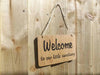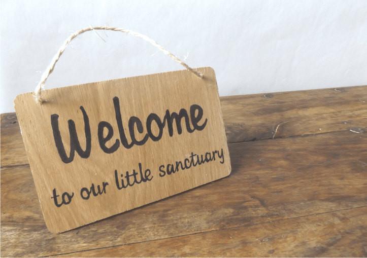 A beautiful, handcrafted oak wood welcome sign. Hung with rustic string, our signs are hand painted using natural oak wood and finished with a protective varnish coat. Ideal sign for interiors and exteriors. Just add a note to your order with your personalised text!